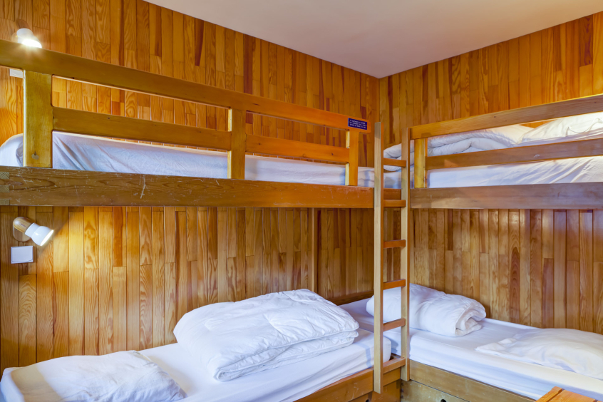 Cabin (accordion wall between the cabin and the living room): 4 bunk beds