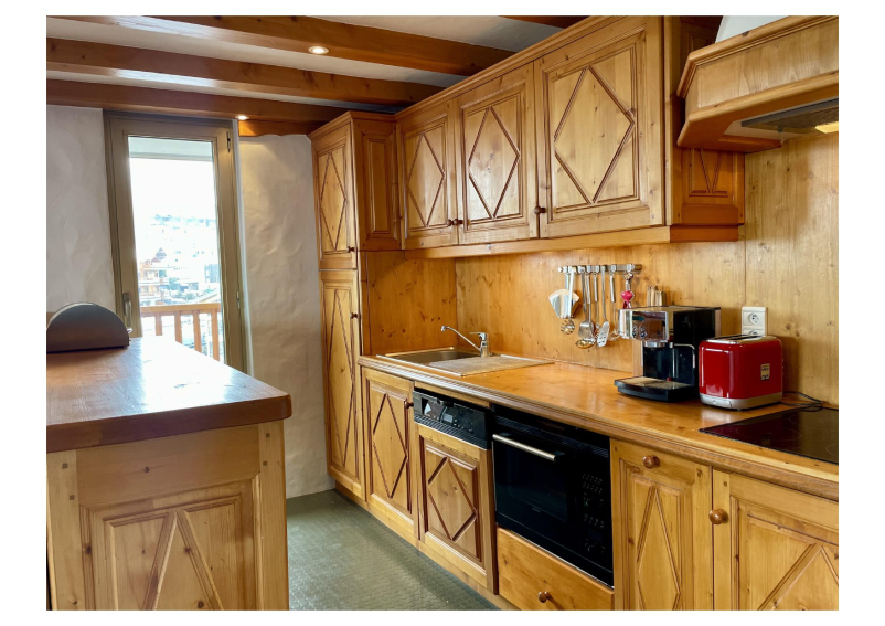 Equipped kitchen opening onto the living room, including fridge with freezer, microwave oven, two Senseo & Nespresso coffee machines (Magimix), dishwasher, raclette and fondue maker, ceramic hob, teapot and toaster.