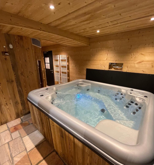 vous pouvez profiter du sauna et jacuzzi sans avoir à sortir du chalet dans la limite des horaires ( 8h30-20h30)